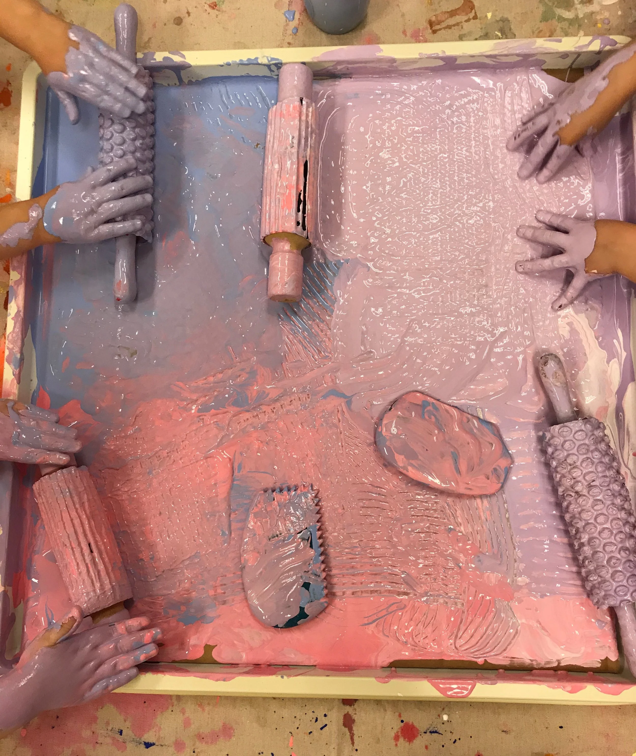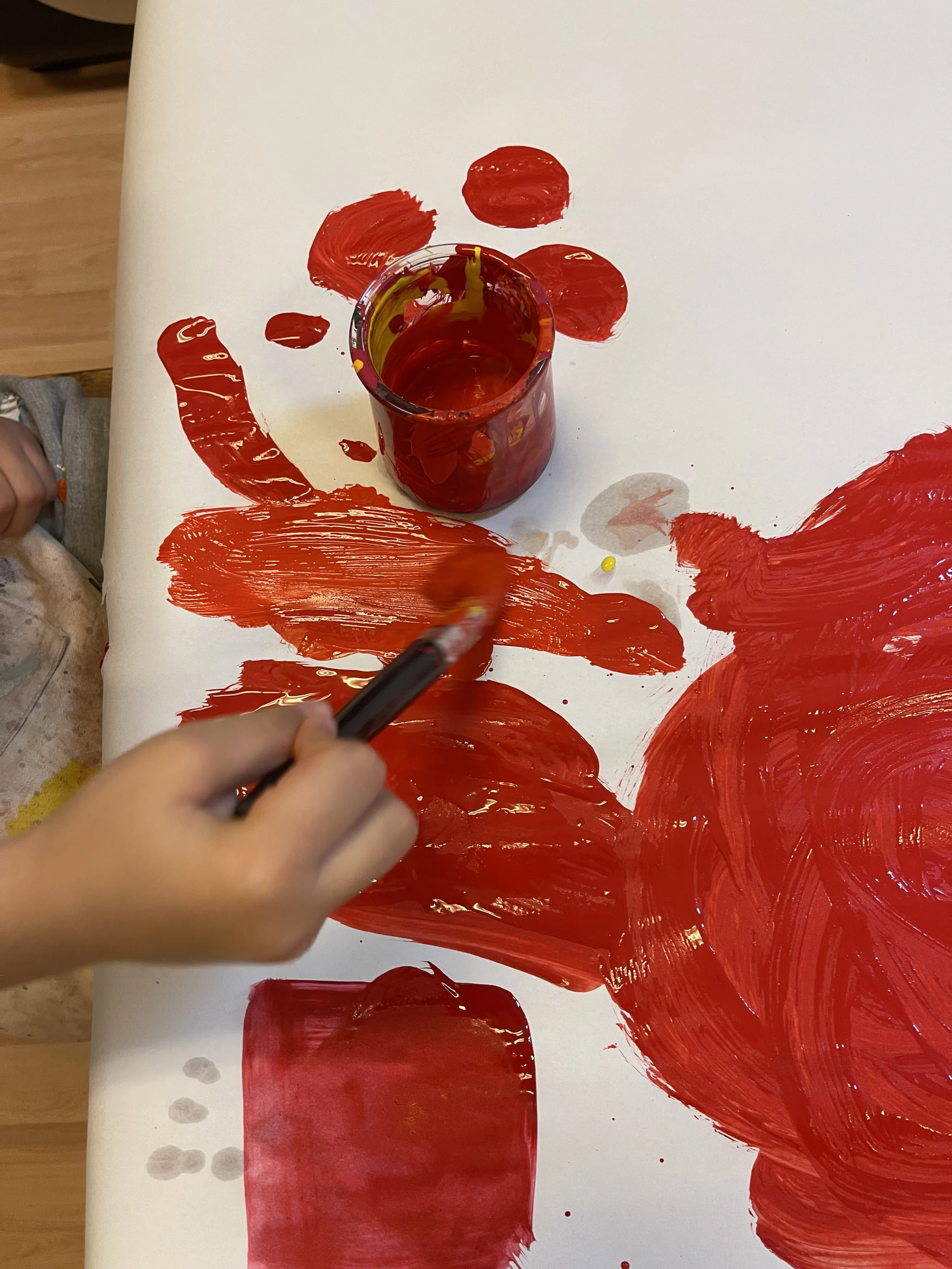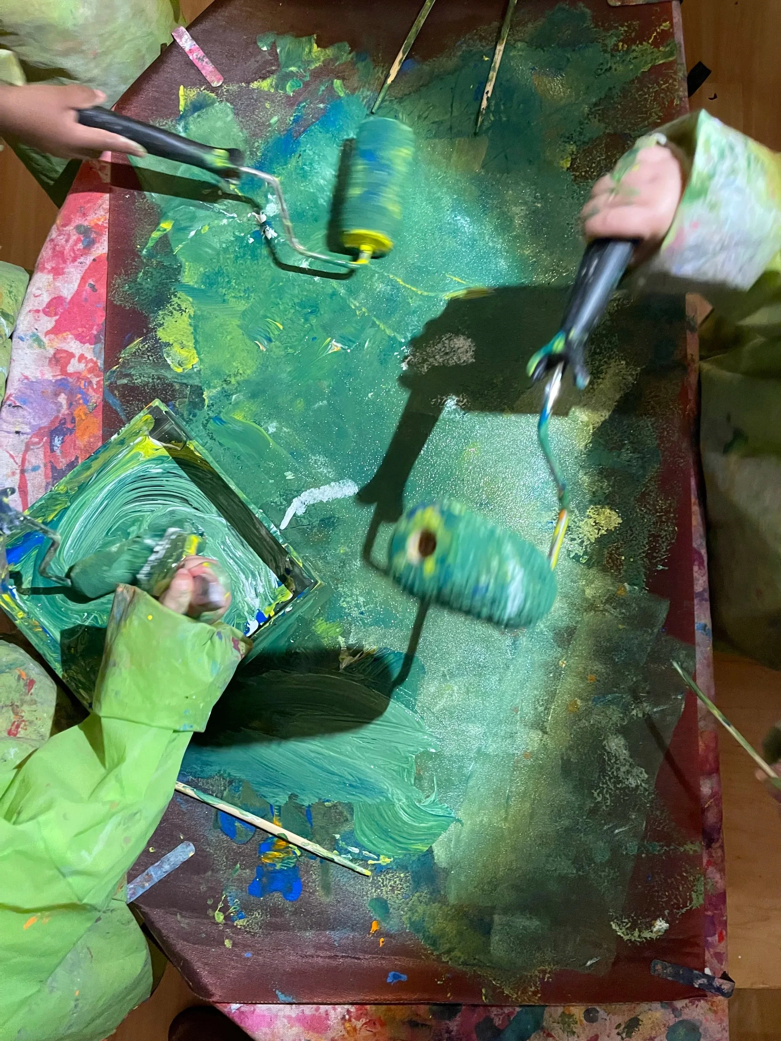 The children work on open-ended, multi-step art experiences over time. Instead of focusing on copying a finished product, kids explore materials, make choices, and express their own ideas—building confidence, problem-solving skills, and deeper engagement with the artistic process.