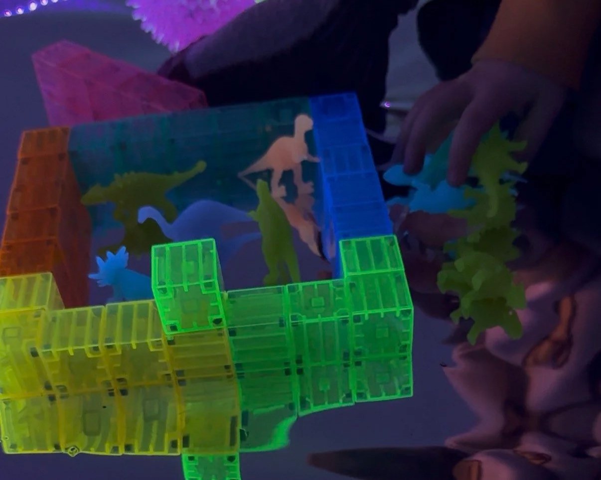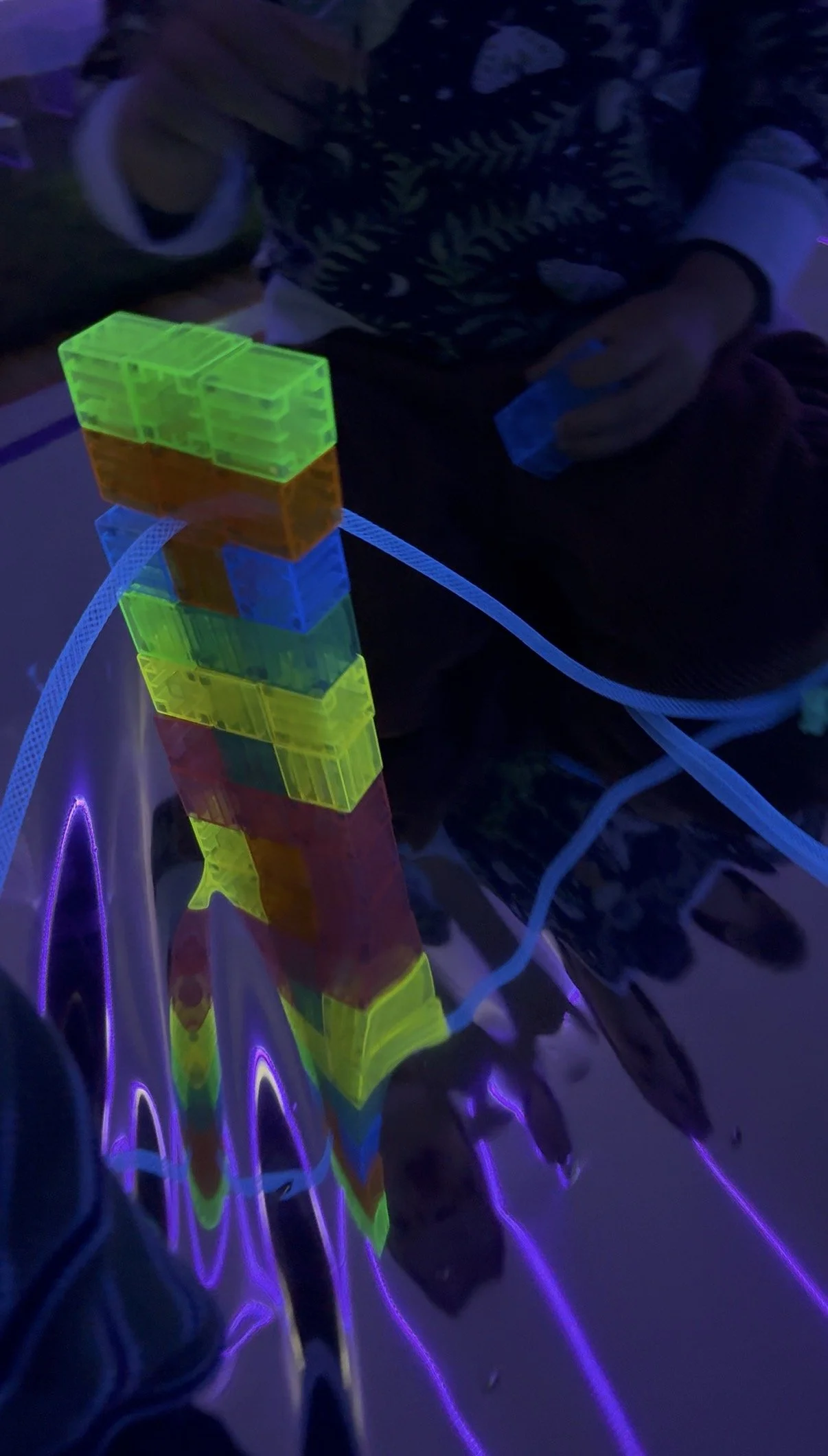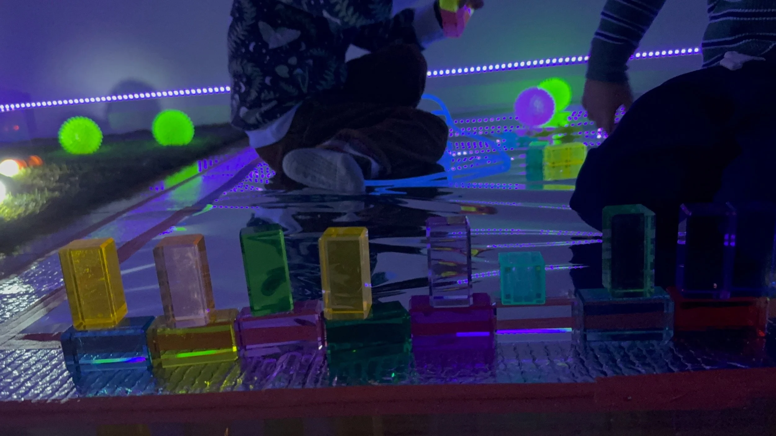 In this darkened room, glowing with neon and movement, learning did not sit still, and neither did the children.